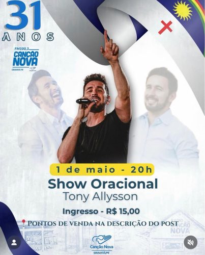 Já à noite, está previsto um show oracional com Tony Allysson. Para participar desta atração, será necessário adquirir ingresso no valor de R$ 15,00, conforme divulgado pelos organizadores.