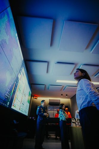 VIDEOMONITORAMENTO – Ainda no Quartel do Comando-Geral, a governadora visitou a Sala de Monitoramento Estratégico do Corpo de Bombeiros. O espaço é uma sala de comando e controle operacional equipada com tecnologia que permite o monitoramento em tempo real de ocorrências de maior complexidade. A estrutura possibilita a transmissão de imagens ao vivo, ampliando a capacidade de análise e tomada de decisão estratégica por parte das equipes.