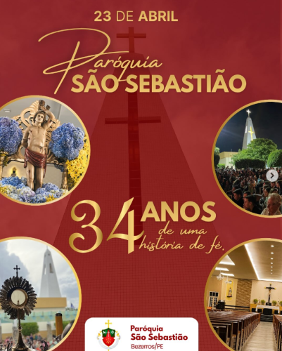 Na última quinta-feira, 23 de abril, a Igreja de São Sebastião de Bezerros completou 34 anos de existência em nosso município, com relevante atuação por meio da evangelização católica na comunidade bezerrense.