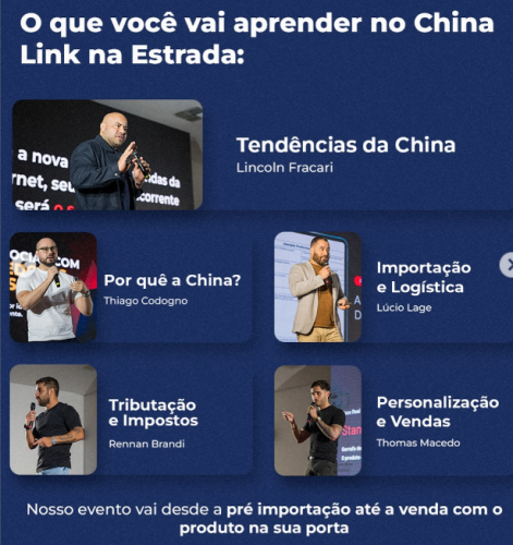 O China Link na Estrada é um evento de importação empresarial que visa ajudar empreendedores e gestores a reduzir riscos, ganhar clareza e acelerar resultados com a importação formal da China.